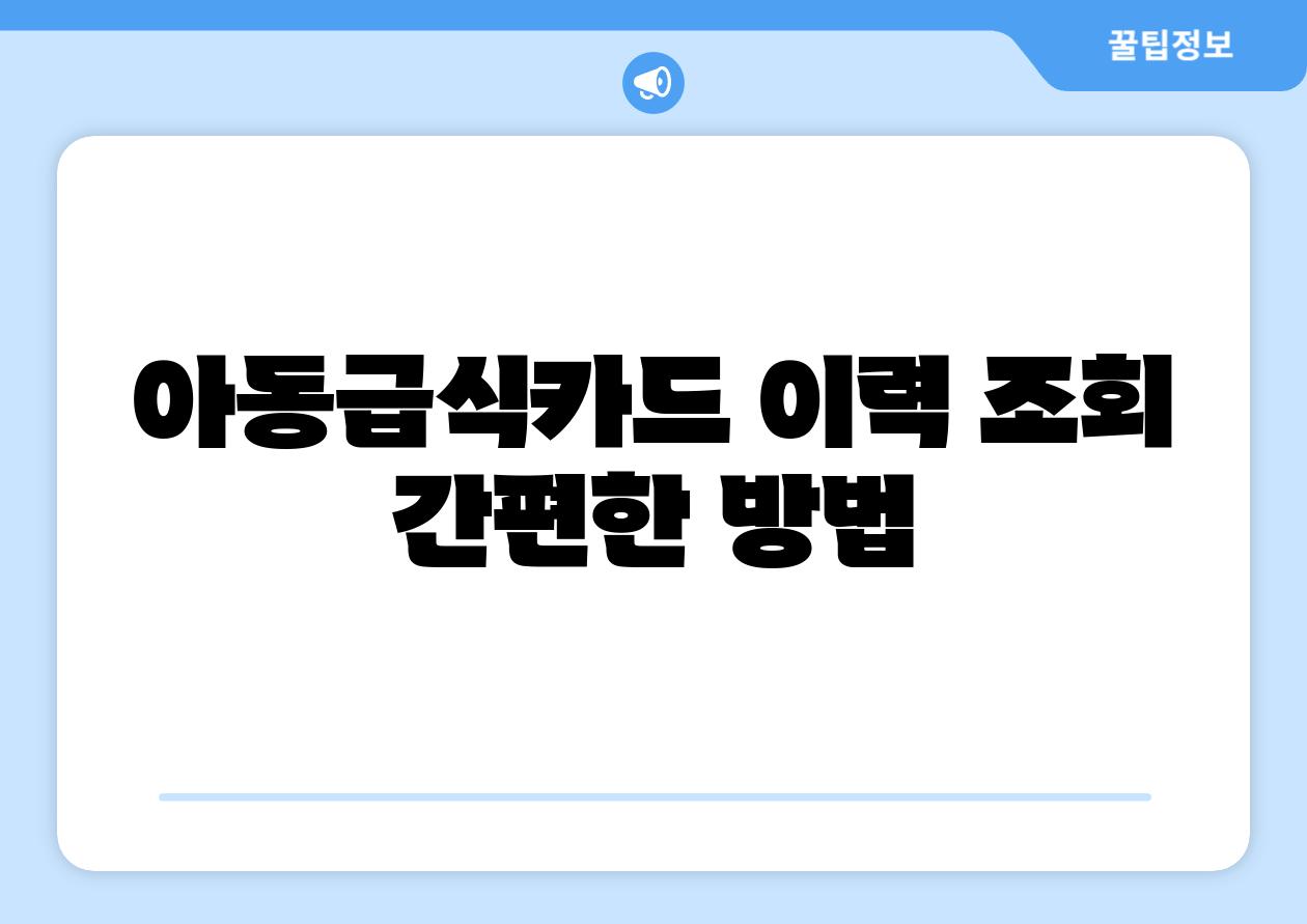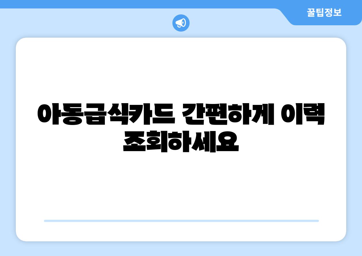아동급식카드 이력 조회| 간편하게 확인하는 방법 | 아동급식, 카드 정보, 조회 방법, 급식 지원