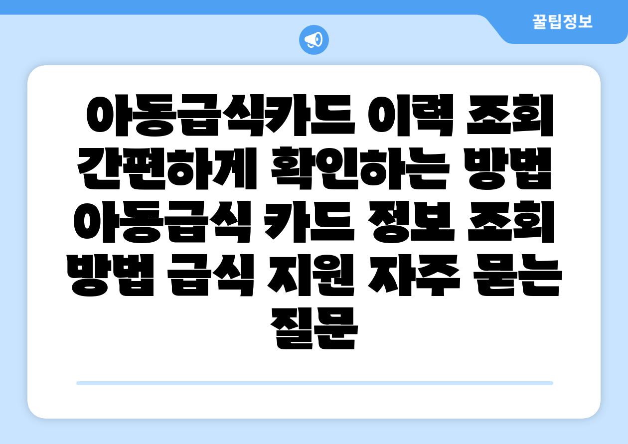 아동급식카드 이력 조회| 간편하게 확인하는 방법 | 아동급식, 카드 정보, 조회 방법, 급식 지원 에 대해 자주 묻는 질문 TOP 5